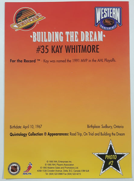 1995 NHL Enterprises Quintology Collection Building The Dream #35 NHL Kay Whitmore Vancouver Canucks Jumbo 5" x 7" Photo Hockey Card