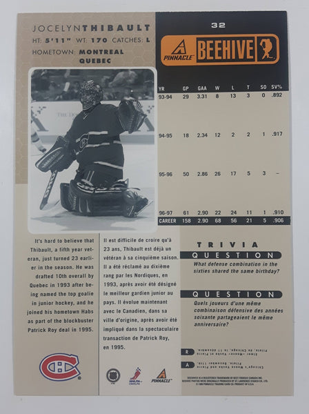 1998 Pinnacle Beehive #32 NHL Jocelyn Thibault Montreal Canadiens Goaltender Jumbo 5" x 7" Photo Hockey Card