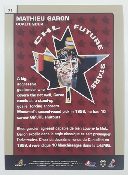 1998 Pinnacle Beehive Official Rookie Card CHL Future Stars #71 Mathieu Garon Victoriaville Tigers Goaltender Jumbo 5" x 7" Photo Hockey Card