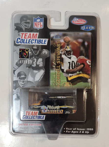 1999 Fleer Skybox White Rose Collectibles NFL Pittsburgh Steelers GMC Yukon Black Die Cast Toy Car Vehicle and Kordell Stewart Trading Card New in Package