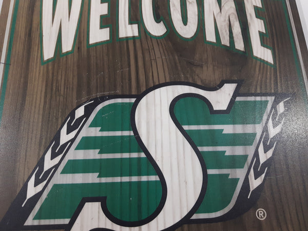 2009 Wincraft CFL Welcome Saskatchewan Roughriders Fans Gather Here 11" x 17" Hardboard Wood Wall Plaque Sign