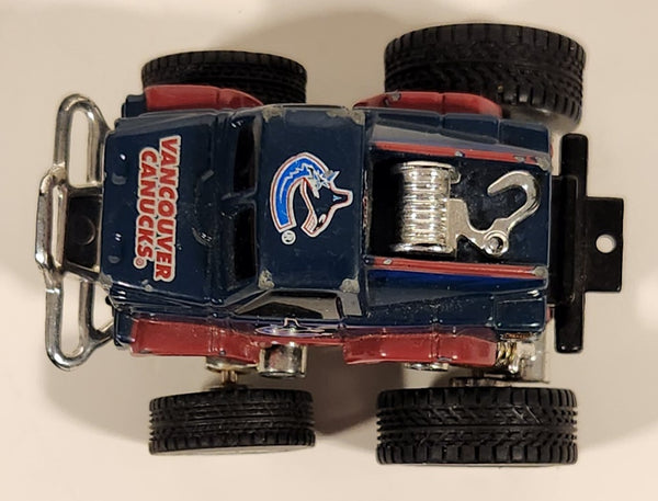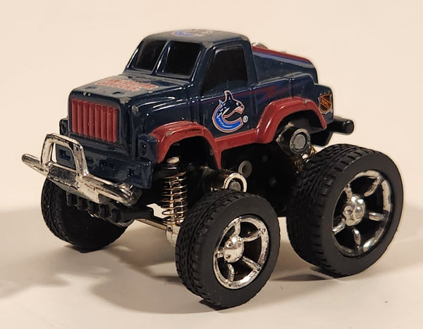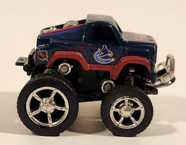 Fleer Collectible NHL Vancouver Canucks Ice Hockey Team Lifted 1997 Ford Truck Dark Blue and Red Pull Back Die Cast Toy Car Vehicle