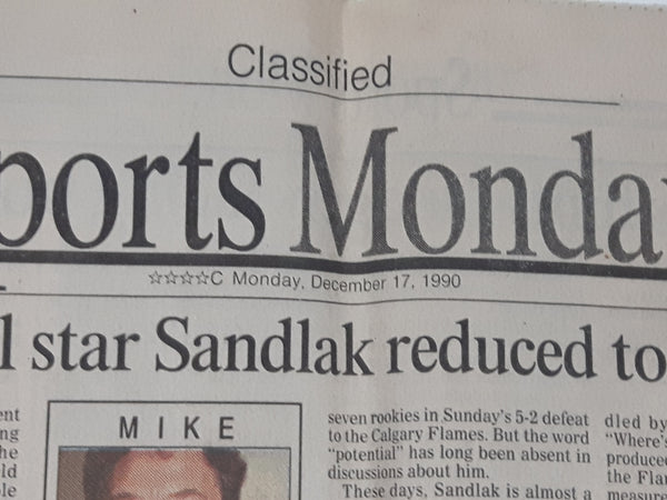 Monday December 17, 1990 Vancouver Sun Calgary Flames Theoren Fleury Newspaper (Sports Section)