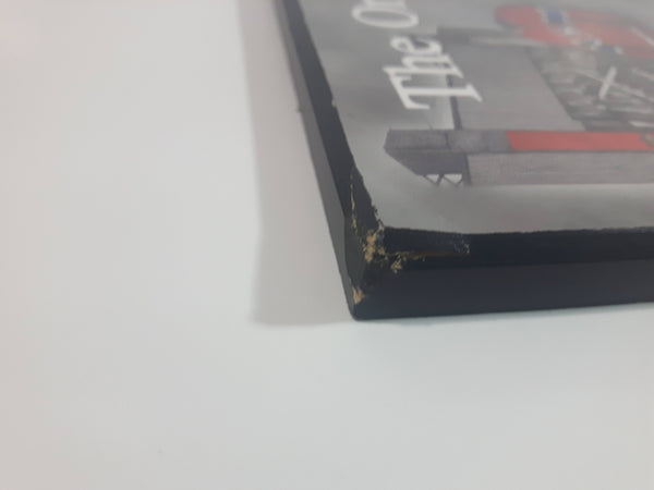 Good used condition with some damage to the top left corner and a small scuff in the grey area. View photos.