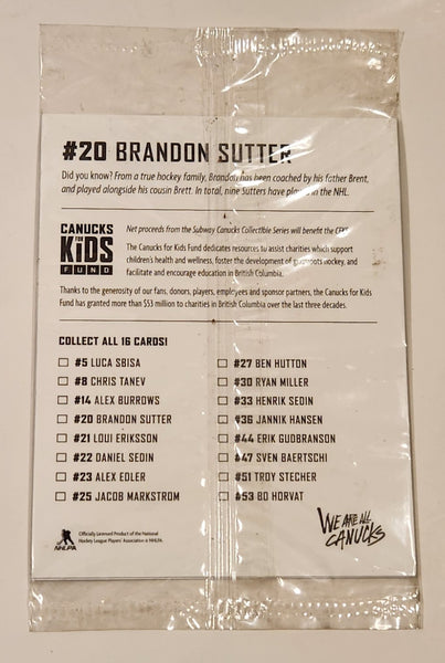 NHL Vancouver Canucks Subway Collectors Series Cards New in Package