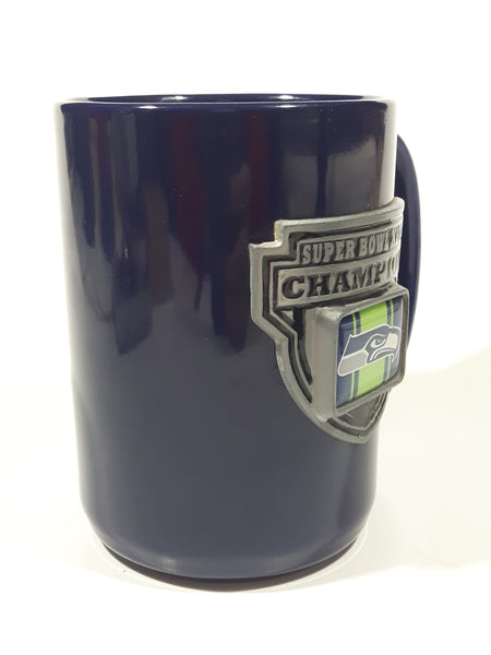 2012 Great American Products NFL Seattle Seahawks Super Bowl XLVIII Champions 4 1/2" Tall Dark Blue Embossed Ceramic Coffee Mug Cup