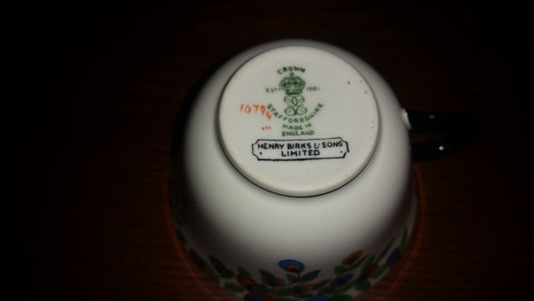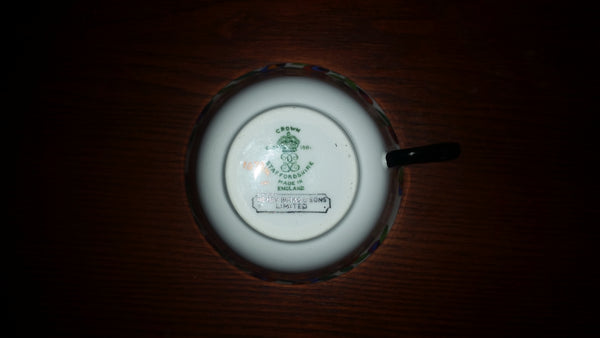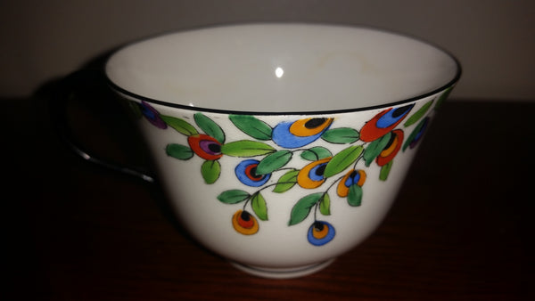 1910s Crown Staffordshire Henry Birks and Sons White Art Nouveau Peacock Teacup