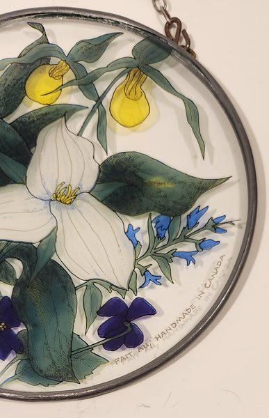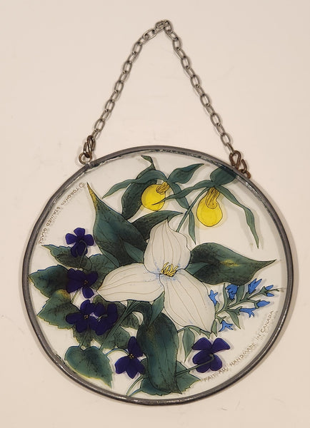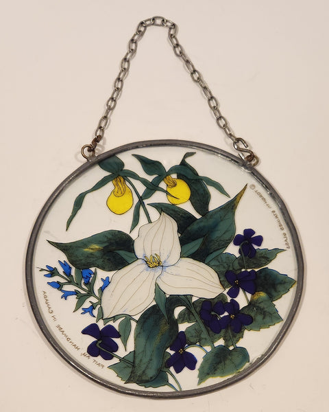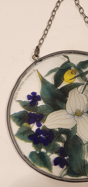 Toronto Stained Glass White Trillium Flower and Violets 6 1/2" Stained Glass Suncatcher Window Hanging