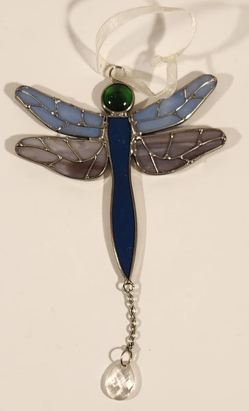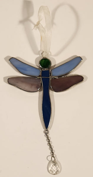 Blue and Purple Dragonfly Stained Glass Window Suncatcher Hanging
