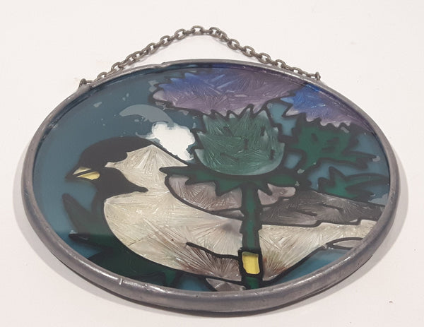 Chickadee Song Bird Small 3 1/2" Painted Stained Glass Suncatcher