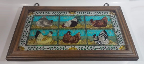 Highly Detailed Joan Baker Designs Hens Chicken Coop Hand Painted Stained Glass Wood Framed Window 13" x 22"