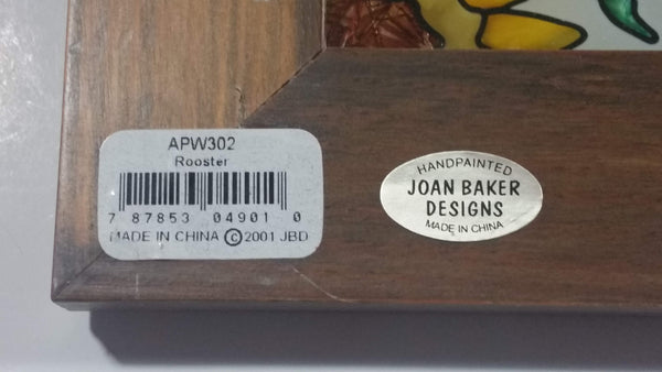 Highly Detailed Joan Baker Designs Hens Chicken Coop Hand Painted Stained Glass Wood Framed Window 13" x 22"
