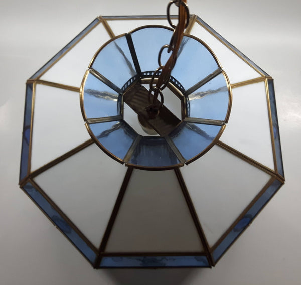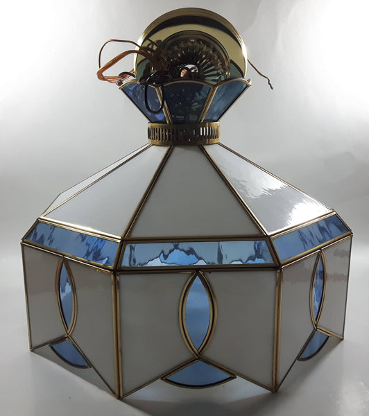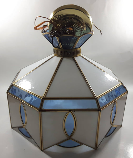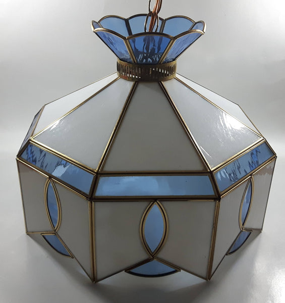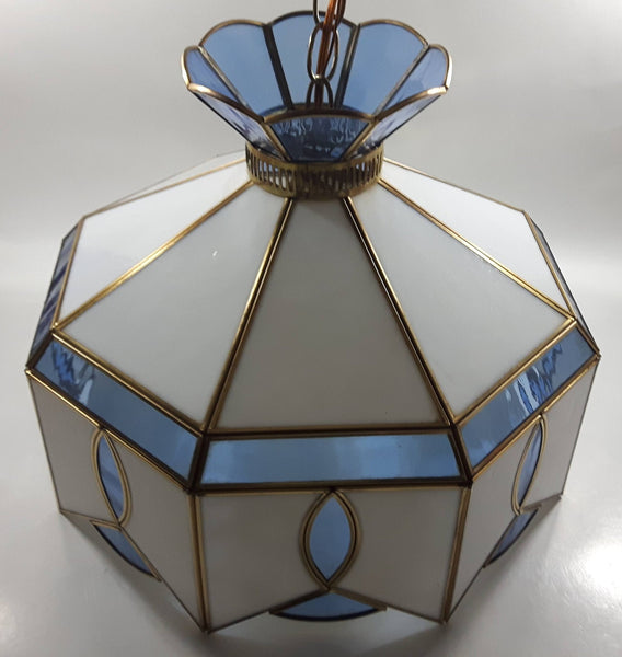 Plastic Panel Stained Glass Style Blue and White Hanging Light Fixture Lamp 12 x 16"