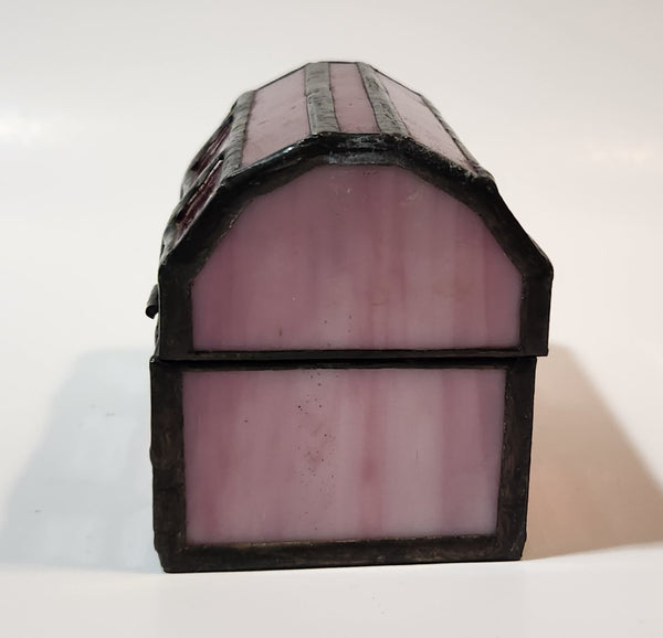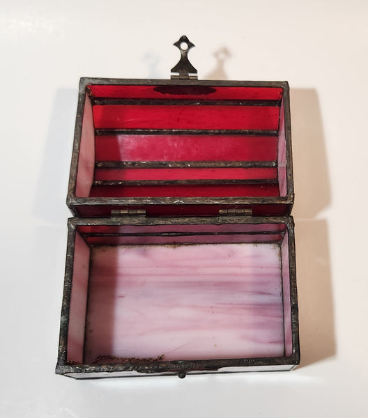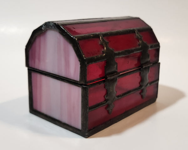 Red Leaded Stained Glass Treasure Chest Trunk Shaped Jewelry Trinket Box