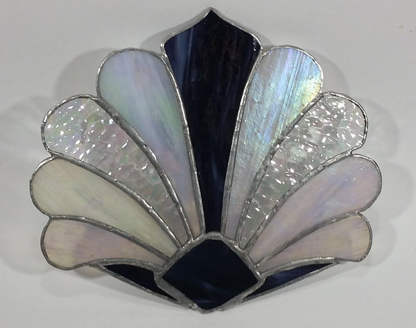 Very Pretty Purple and Mother of Pearl Peacock Tail Feathers 9 1/2" x 8 1/4" Stained Glass - 2 cracked panes