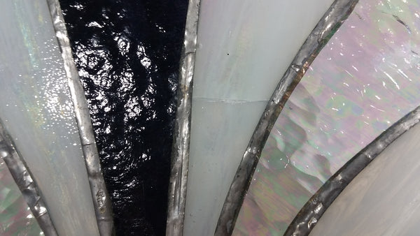 Very Pretty Purple and Mother of Pearl Peacock Tail Feathers 9 1/2" x 8 1/4" Stained Glass - 2 cracked panes