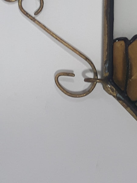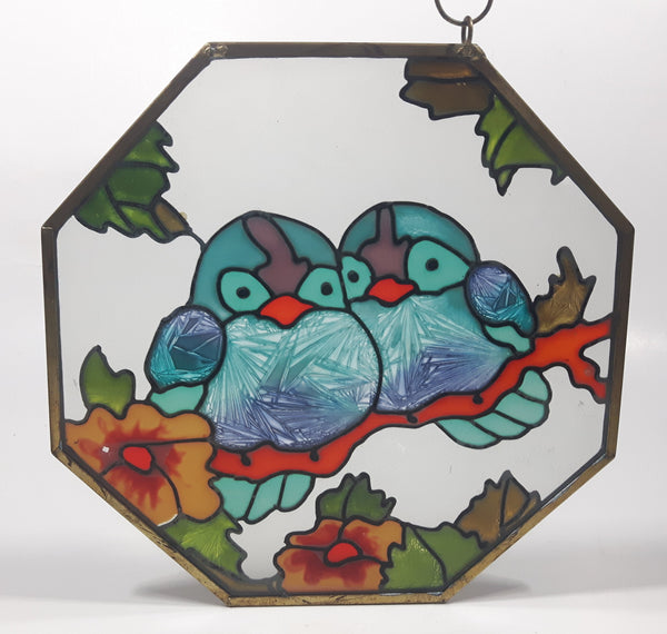 Vintage Blue Song Bird Octagon Shaped 6 1/4" x 6 1/4" Painted Stained Glass Suncatcher Needs Hanger Repair