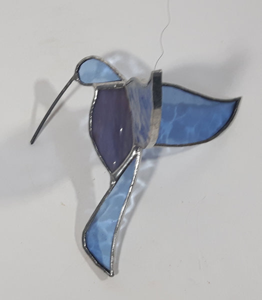 Vintage Light Blue and Purple Hummingbird 3D Leaded Stained Glass Window Sun Catcher