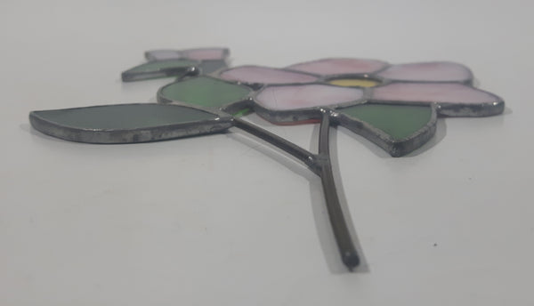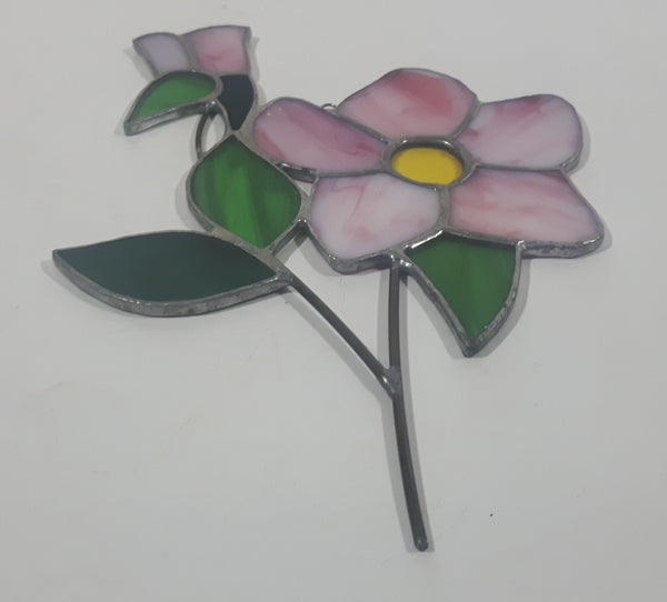 Vintage Pink Flower Leaded Stained Glass Window Sun Catcher Hanging