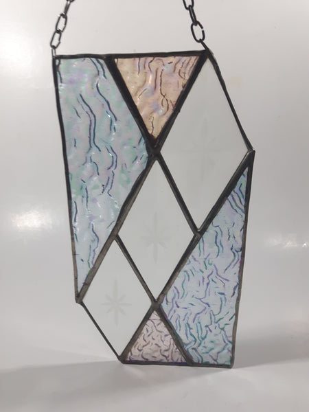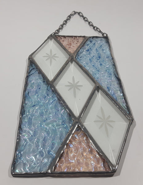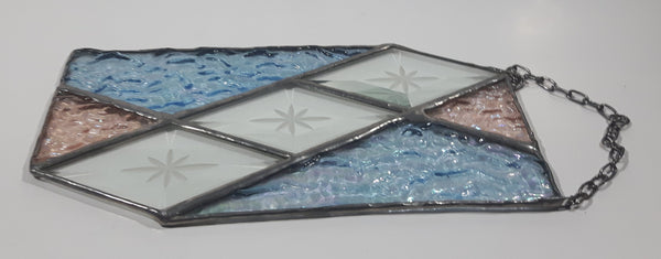 Vintage Rippled Ice Texture Iridescent Light Blue and Light Pink with Clear Diamond Star Burst Pattern 4 1/4" x 8" Stained Glass Window Sun Catcher