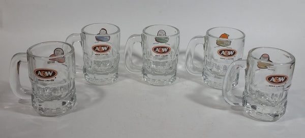 1990s Special Edition A & W Miniature Root Beer Mugs - Grandpa, Papa, Mama, Teen, Baby Set of 5