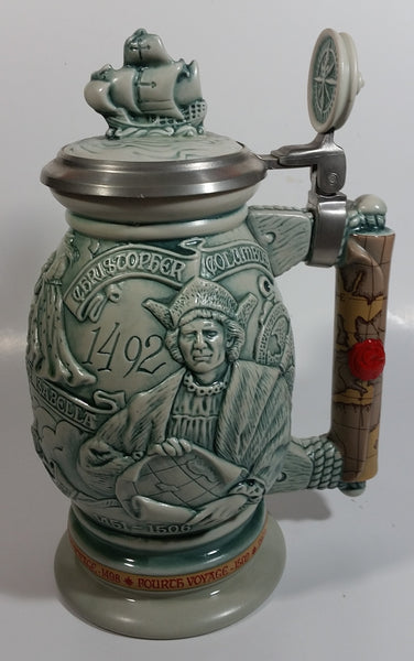 1992 Avon Limited Edition Ceramarte Christopher Columbus New World Stein Hand Painted Ceramic Beer Stein Made in Brazil