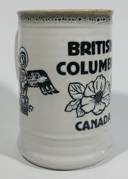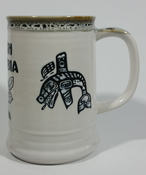 Capilano Vancouver British Columbia Aboriginal Art Dogwood Flower, Fish, Bird Totem Ceramic 5 1/4" Tall Coffee Mug