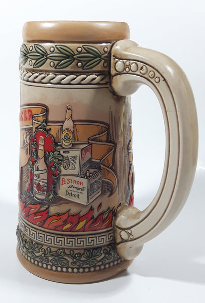 Vintage The Stroh Brewery Co. Ceramarte Brazil Heritage Series VI Stroh's Fire Brewed Beer 7 1/2" Tall Embossed Ceramic Beer Stein