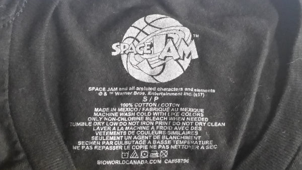 1996 Space Jam Animated Film Size Small S/P Black T-Shirt Cartoon Movie Collectible - Excellent used condition - Basketball Themed
