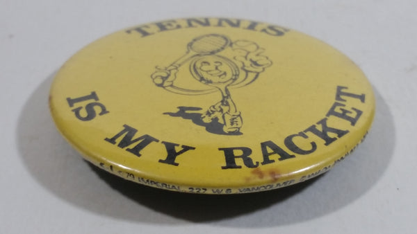 Tennis Is My Racket Circular Round Yellow Button Pin Sports Collectible