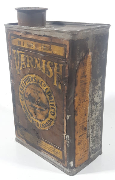 Antique G.F. Stephens & Co. Limited Winnipeg Canada Varnish Hard Oil Finish Metal Container EMPTY