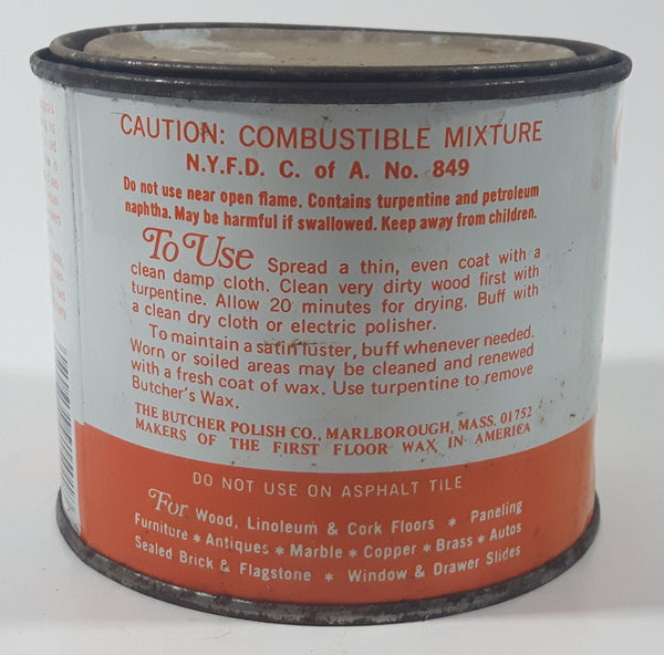 Butcher's Wax Bowling Alley Paste 16 Oz 1 Lb Orange and White Metal Can