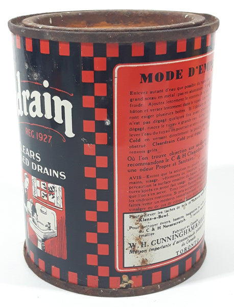 Rare Antique C&H Cleardrain Clears Clogged Drains 4 1/4" Tall Metal Can Still Full