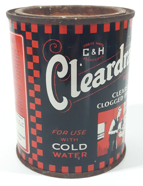 Rare Antique C&H Cleardrain Clears Clogged Drains 4 1/4" Tall Metal Can Still Full