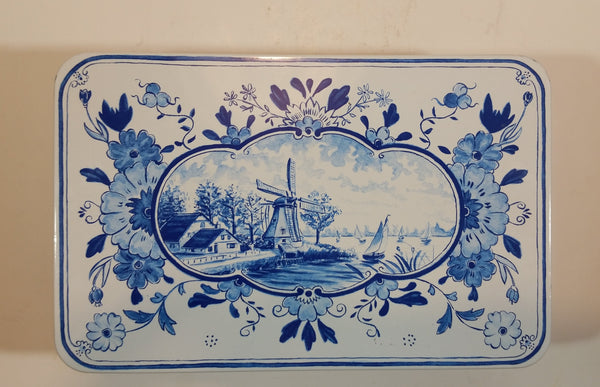 1960s Hellema Hallum Holland Biscuits Tin with Delft Style Scenery