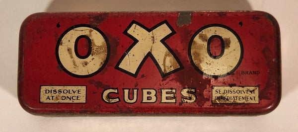 Antique 1930s Oxo Brand Cubes Red Tin Metal Container