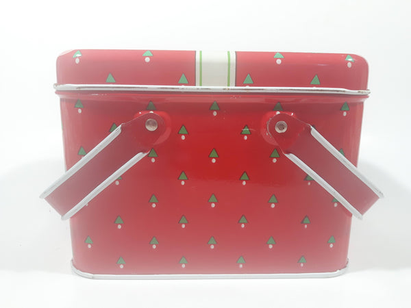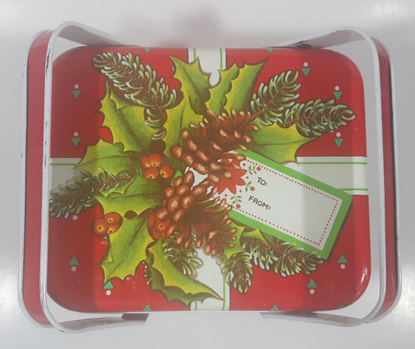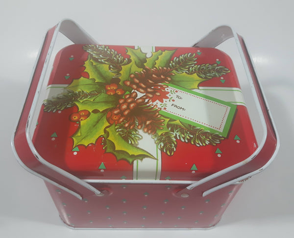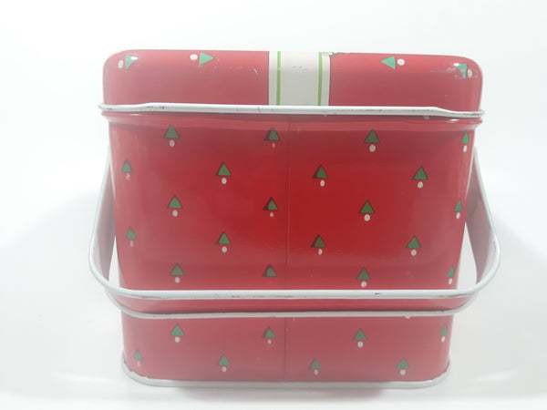 Christmas Present Gift Themed Red Tin Metal Container with Handles