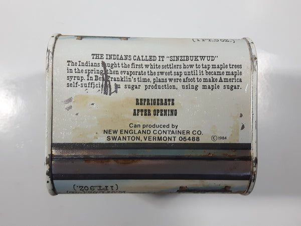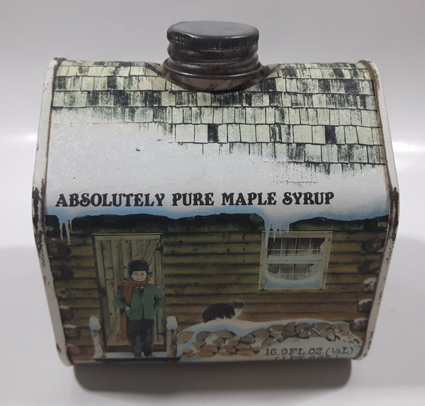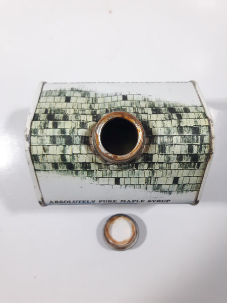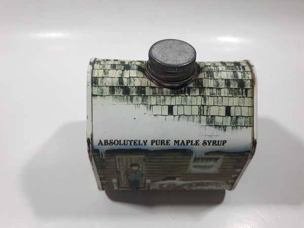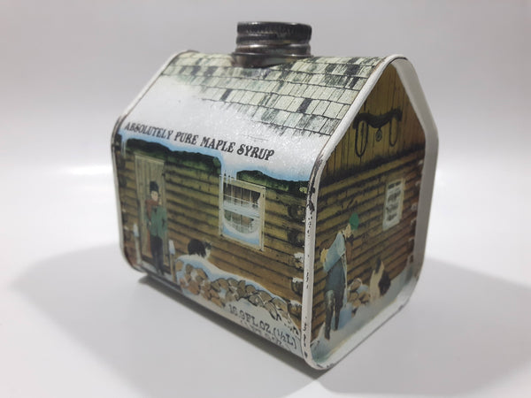 Vintage 1984 New England Container Co. Absolutely Pure Maple Syrup Log Cabin Shaped Tin Metal Container