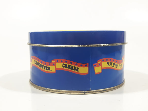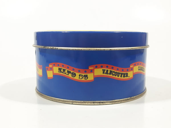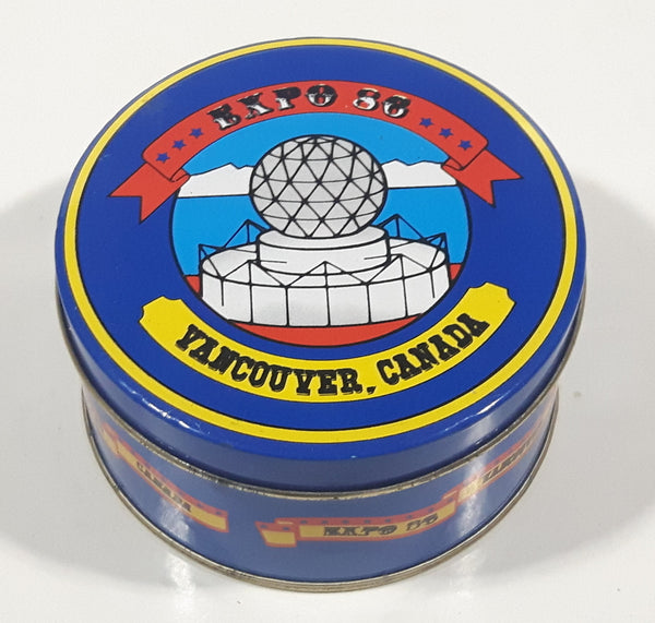Vintage Expo 86 Vancouver Canada Science Center 3 3/8" Round Blue Tin Metal Container