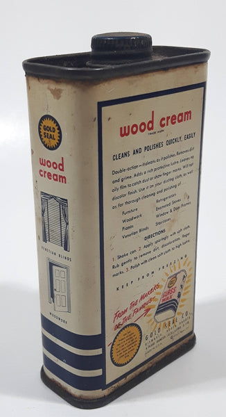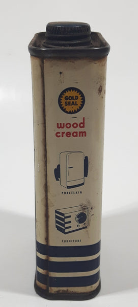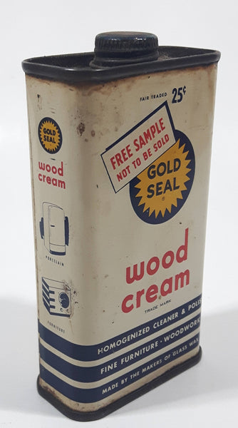 Vintage Gold Seal Wood Cream Free Sample 25 Cents 4 1/8" Tall Tin Metal Container 4 Fluid Ounces