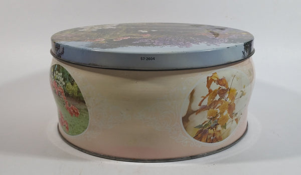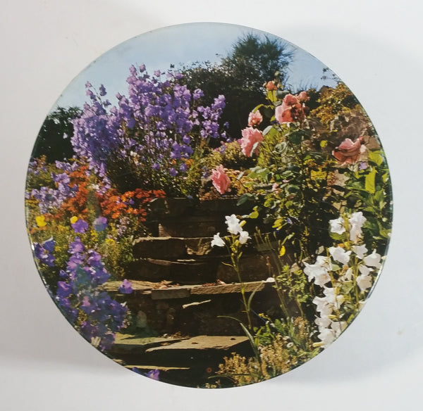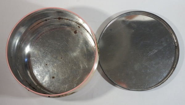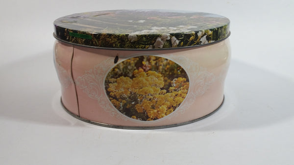 Vintage Pretty "English Garden" Flower Garden Themed Round Pink Tin Metal Container