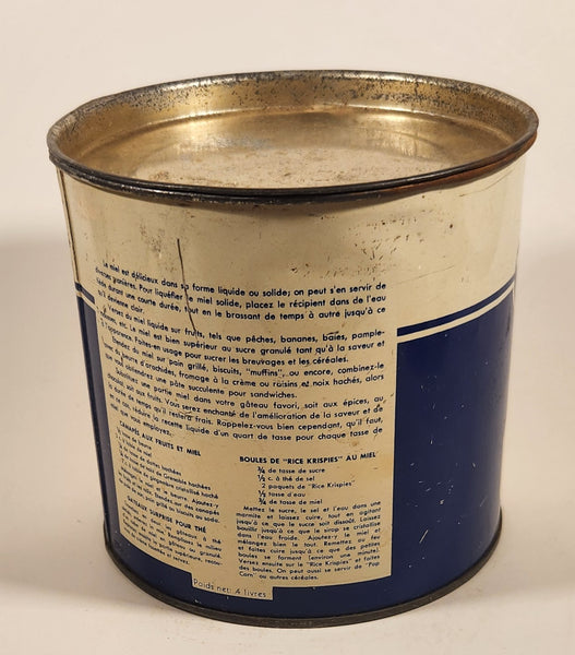 Vintage Pure Canadian Honey Blue and White Tin Metal Can