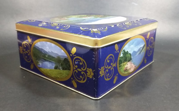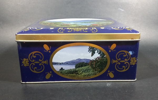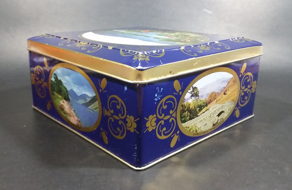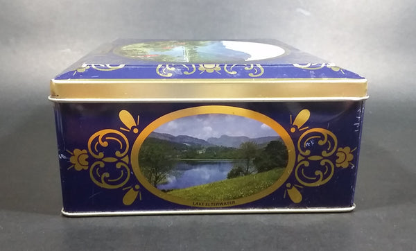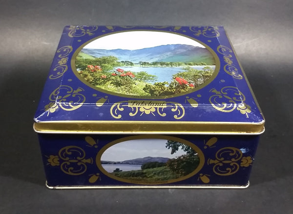 Vintage St Michael Marks & Spencer Lakeland Biscuits Tin Blue with Gold Motif -  Lake Scenes on each side