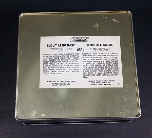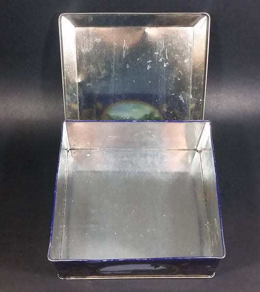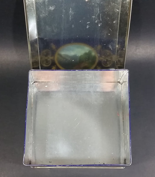 Vintage St Michael Marks & Spencer Biscuits Tin Blue with Gold Motif - Lake Scenes on each side