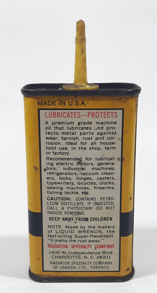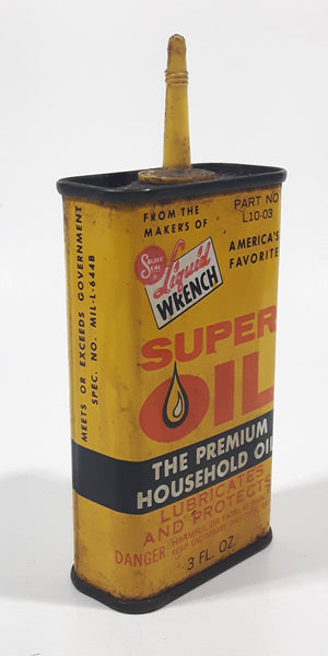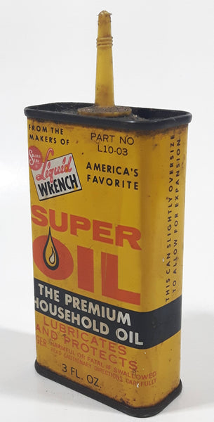 Vintage Super Seal Liquid Wrench Super Oil The Premium Household Oil Yellow 5" Tall Tin Metal Container 3 Fluid Ounces