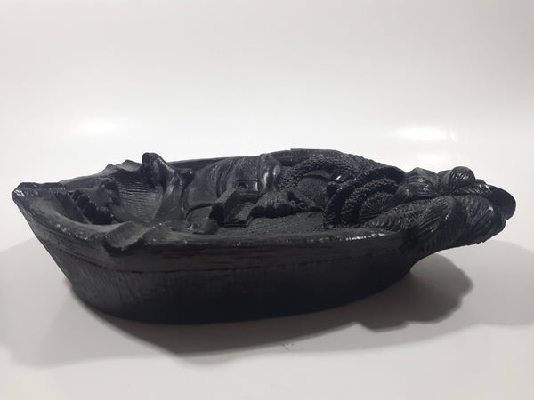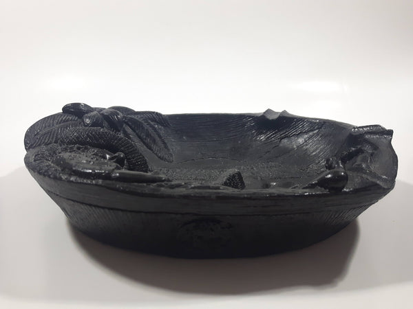 Vintage 1970s Coco Joe's Hawaii Beach Bum Man Lounging Against Palm Tree 3D Black Carved Lava Ash Tray 9" Long