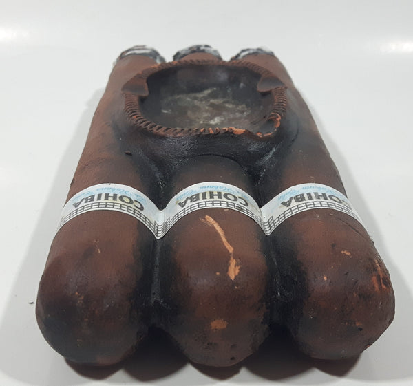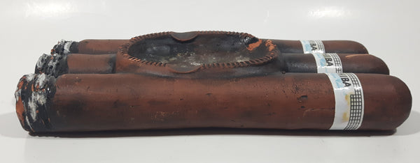 Vintage Cohiba La Habana Cuba Triple Burning Cigar Shaped Three Rest Pottery Ash Tray