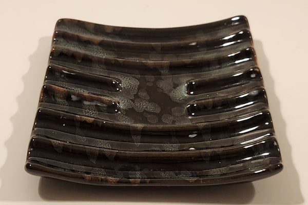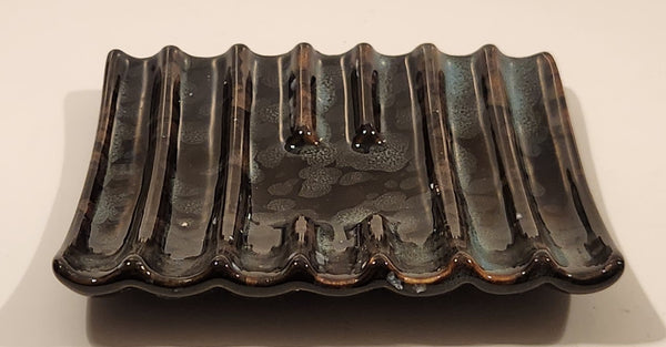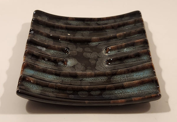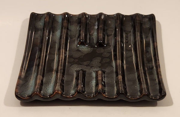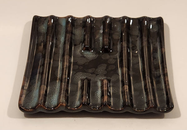 Vintage Curved Slotted Pottery Drip Glaze Ashtray Dish