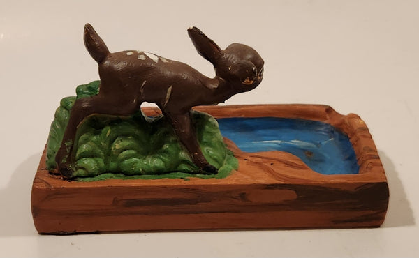 Vintage Hand Painted Deer Next to Water and Bush Ceramic Ashtray Made in Japan