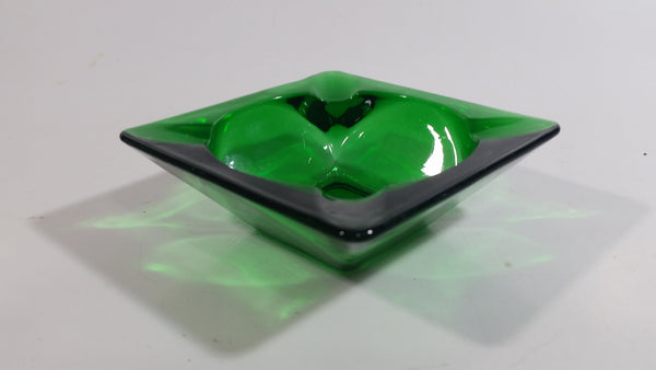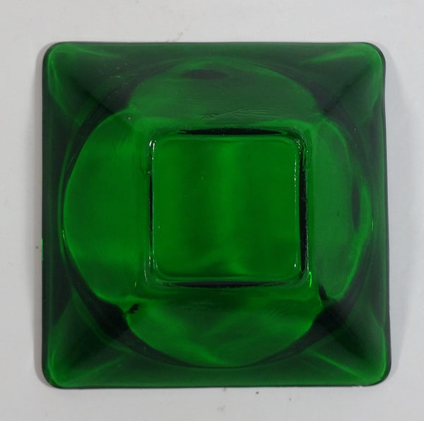 Vintage Square Shaped Dark Green Glass Ash Tray Smoking Collectible